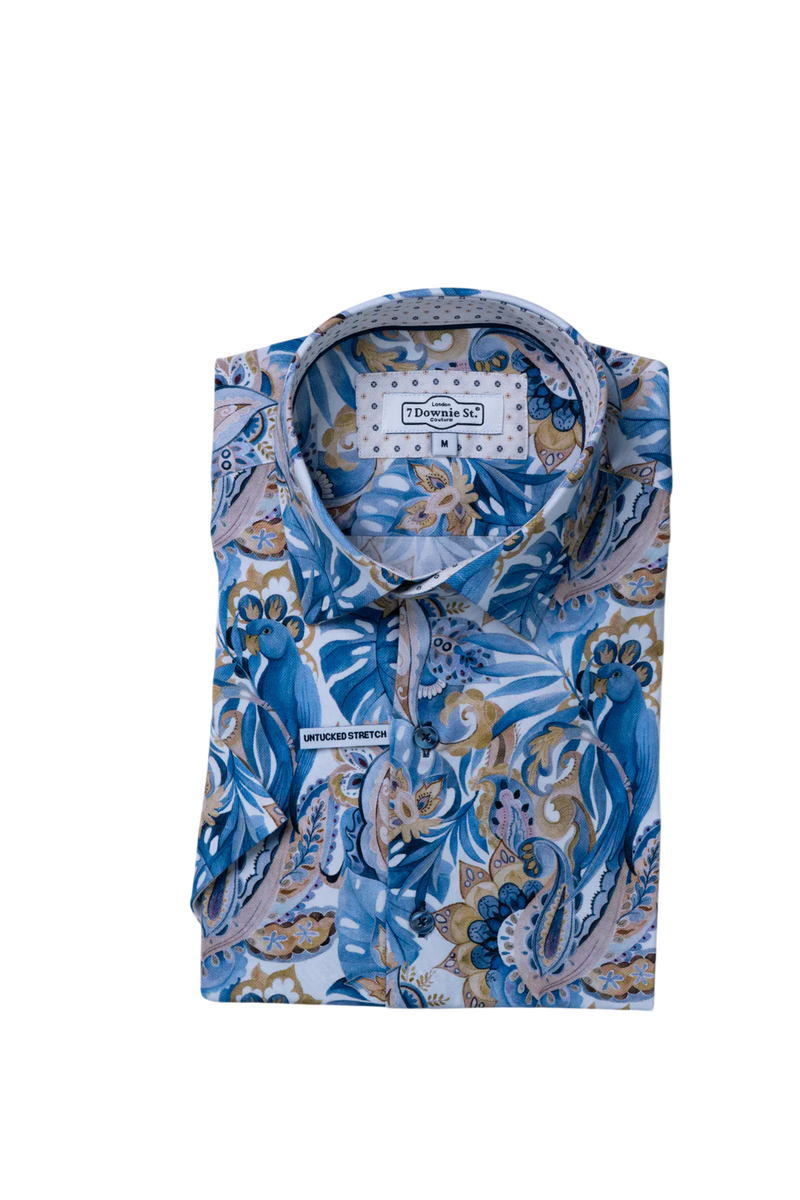 7 Downie St. Blue Floral Paisley S/S Sport Shirt